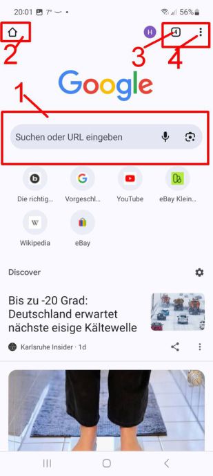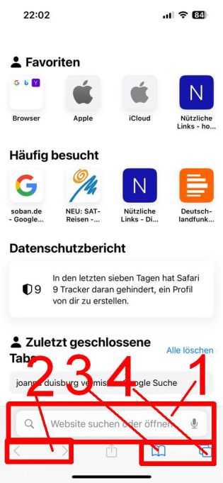 2 - home-Biutton: springt zum Startbilschirm des Browsers